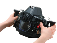Though the housing boasts depth rating of 100mm/330ft, buttons on the housing can be effortlessly depressed. As necessary controls for movie shooting can be manipulated with levers, subtle control is possible. The positions of the grips have been revised for better access to various controls.